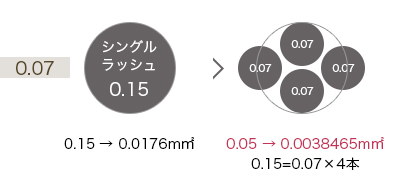 同じ地まつ毛の量に装着してもこんなに違います