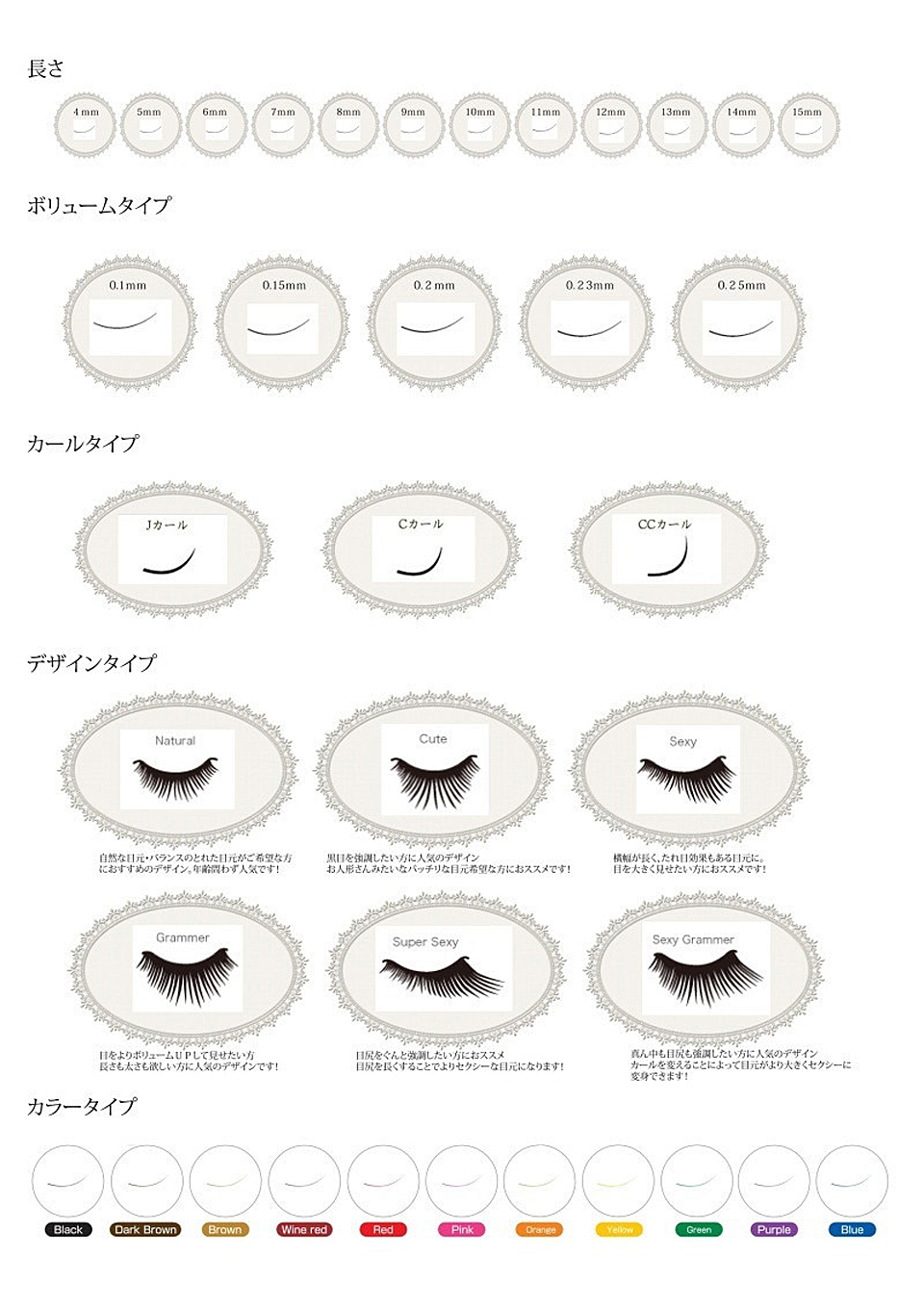 Jカール太さ01.5mmか0.2mm、長さ6mm~9mmの中からご選択可能です。下まつげだけのご予約も可能です。